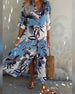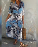 Deep V half-sleeve printed elegant dress