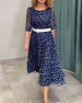 Elegant Three-Quarter Sleeve Printed Waist Dress
