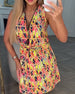 Casual Pocket V-Neck Printed Two-Piece Swimsuit