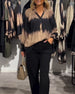 Vintage colorblock V-neck button blouse