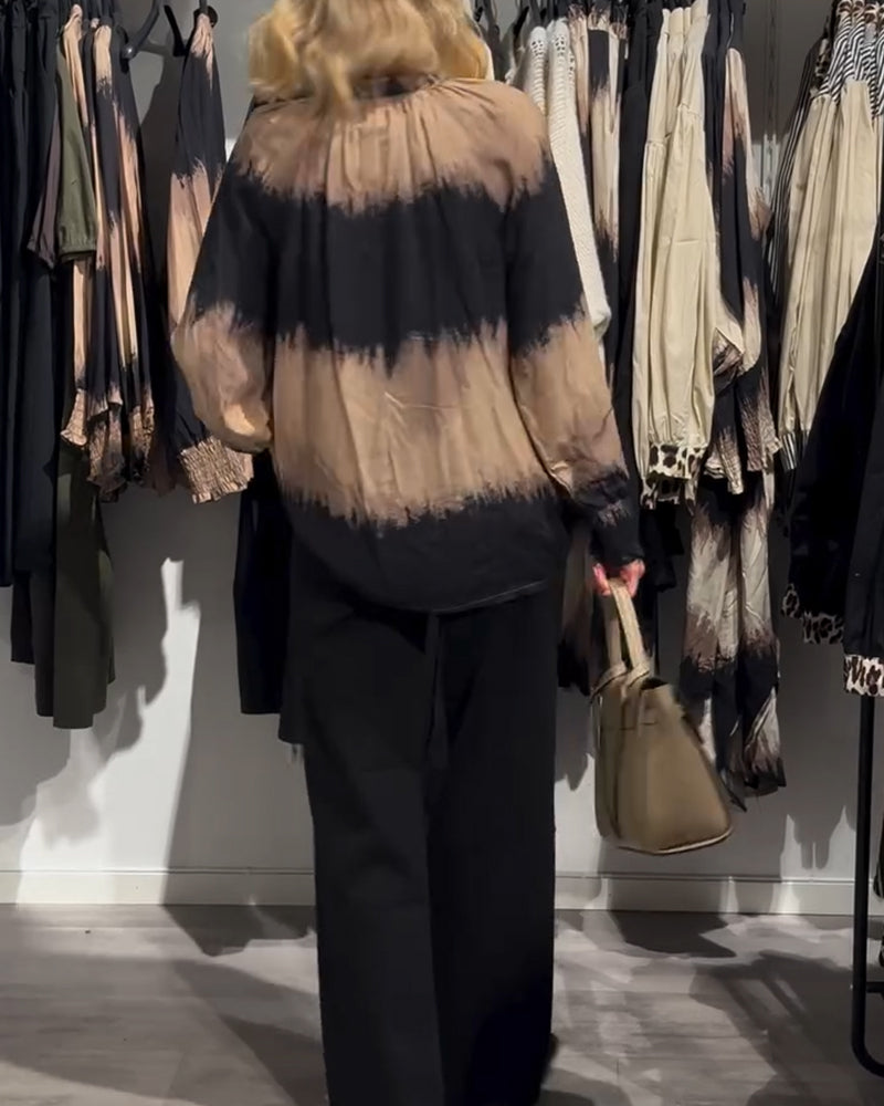 Striped Print Lantern Sleeve Top