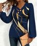 V-neck long-sleeved sequined jumpsuit