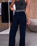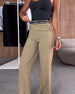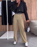 Casual solid color zipper pocket straight pants