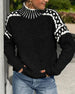 High Neck Patterned Contrast Sweater