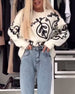 High Neck Patterned Contrast Sweater