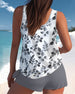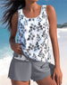 Icon1 Leaf Print U-Neck Tank Top Swimsuit