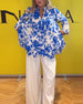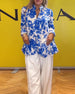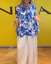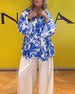 Colorful floral print V-neck three-quarter sleeve casual shirt
