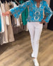 Colorful floral print V-neck three-quarter sleeve casual shirt