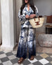 Icon1 Plant gradient print lantern sleeve two-piece suit