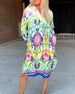 Colorful floral print V-neck three-quarter sleeve casual shirt