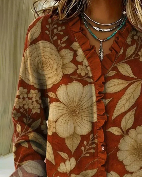 NEW Icon1 Retro Print Long-Sleeved Blouse