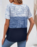 Lapel Three-Quarter Sleeve Contrast Color Blouse