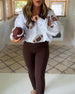 Lapel Three-Quarter Sleeve Contrast Color Blouse