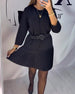 Elegant V-neck lace-up long-sleeve leather dress