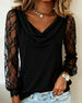 SPECIFICATIONS Top Type: Tops Style: Casual Material: Cotton Blends,Lace Occasion: Daily Neckline: Draped Collar Pattern Type: Solid Color Sleeve Type: Regular sleeve Sleeve Length: Long Sleeve Fit Type: Regular Season: Fall,Winter Package Includes: 1 x Top SIZE TABLE Size Bust Length CM INCH CM INCH S 97 38.19 65 25.59 M 101 ...