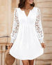 SPECIFICATIONS Style: Casual Material: Cotton Blends,Lace Dress Type: A-Line Dress Length: Above-knee Neckline: V neck_V Pattern Type: Solid Color Sleeve Type: Regular sleeve Sleeve Length: Long Sleeve Fit Type: Regular Season: Fall,Winter Occasion: Daily Package Includes: 1 x Dress SIZE TABLE Size Bust Waist CM INCH CM INCH S 92 36.2...