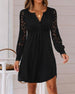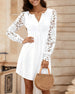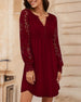 SPECIFICATIONS Style: Casual Material: Cotton Blends,Lace Dress Type: Shift dress Dress Length: Above-knee Neckline: V neck_V Pattern Type: Solid Color Sleeve Type: Lantern Sleeve Sleeve Length: Long Sleeve Details: Shirred Fit Type: Regular Season: Fall,Winter Occasion: Daily Package Includes: 1 x Dress SIZE TABLE Size Bust Length CM I...
