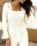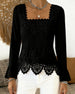 SPECIFICATIONS Top Type: Tops Style: Elegant Material: Cotton Blends Occasion: Daily Neckline: V neck_V Pattern Type: Solid Color Sleeve Type: Regular sleeve Sleeve Length: Long Sleeve Fit Type: Regular Season: Spring,Fall,Winter Details: Patchwork,Lace Package Includes: 1 x Top SIZE TABLE Size Bust Length CM INCH CM INCH S 97 3...