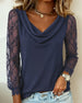 SPECIFICATIONS Top Type: Blouses Style: Casual Material: Lace,Polyester Occasion: Daily Neckline: Lapel Pattern Type: Solid Color Sleeve Type: Regular sleeve Sleeve Length: Long Sleeve Fit Type: Regular Season: Spring,Fall Details: Patchwork Package Includes: 1 x Blouse SIZE TABLE Size Bust Length CM INCH CM INCH S 97 38.19 65 2...