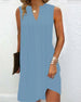 SPECIFICATIONS Style: Casual Material: 100% Polyester Dress Type: Shift dress Dress Length: Knee Length Neckline: V neck_V Pattern Type: Solid Color Sleeve Length: Sleeveless Fit Type: Regular Season: Spring, Summer, Fall Occasion: Daily Package Includes: 1 x Dress SIZE TABLE Size Bust Length Shoulder CM INCH CM INCH CM INC...