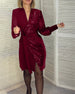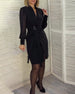 SPECIFICATIONS Style: Chic Material: 95% polyester, 5% spandex Dress Type: Tunic Dress Length: Knee Length Neckline: V neck_V Pattern Type: Sequin, Solid Color Sleeve Type: Regular sleeve Sleeve Length: Long Sleeve Details: Lace Up Fit Type: Regular Season: Fall, Winter Occasion: Daily, Vacation Package Includes: 1 x Dress SIZE TABLE Size...