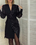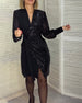 SPECIFICATIONS Style: Party Material: Cotton Blends Dress Type: Bodycon Dress Length: Knee Length Neckline: V neck_V Pattern Type: Sequin Sleeve Type: Regular sleeve Sleeve Length: Long Sleeve Details: Slit Fit Type: Skinny Season: Fall,Winter Occasion: Party Package Includes: 1 x Dress SIZE TABLE Size Bust Length CM INCH CM IN...