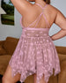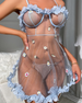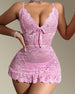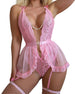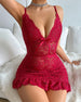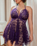Floral Lace Halter Babydoll Lingerie Dress With Thong