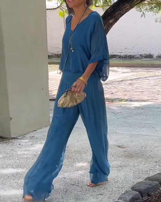 -50% Icon1 Solid color V-neck casual two-piece suit