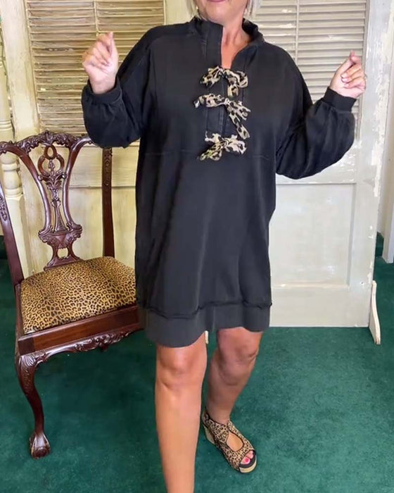 NEW Icon1 Stand Collar Loose Long Sleeve Dress