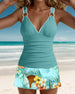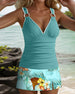 Casual Pocket V-Neck Printed Two-Piece Swimsuit