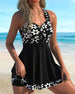 Casual Pocket V-Neck Printed Two-Piece Swimsuit