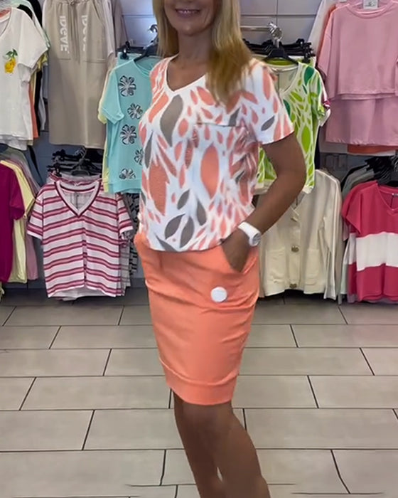 Casual Pocket V-Neck Printed Two-Piece Swimsuit