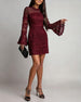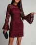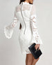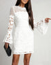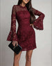 SPECIFICATIONS Style: Casual,Chic Material: Cotton Blends Dress Type: Bodycon Dress Length: Above-knee Neckline: Round Neck Pattern Type: Solid Color Sleeve Type: Flare Sleeve Sleeve Length: Long Sleeve Details: Lace Fit Type: Regular Season: Fall,Winter Occasion: Vacation,Party Package Includes: 1 x Dress SIZE TABLE Size Bust Length CM...