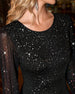 Round Neck Long-Sleeved Sequined Patchwork Dress