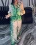 Casual Pocket V-Neck Printed Two-Piece Swimsuit