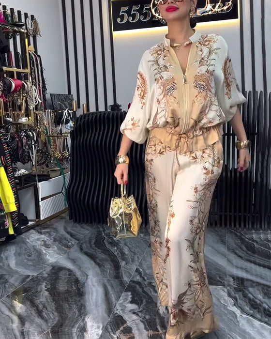 Icon1 Temperament Stand Collar Zipper Wide Leg Suit