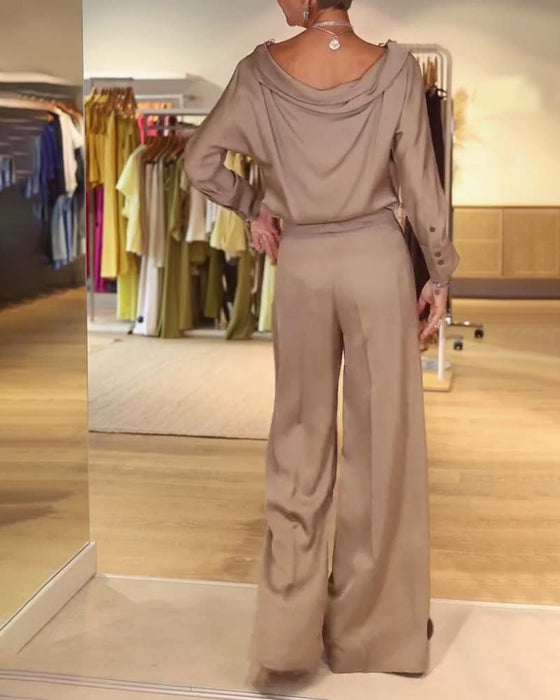 NEW Icon1 Temperamental Slouch Collar Solid Color Women's Blouse