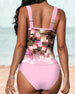 Casual Pocket V-Neck Printed Two-Piece Swimsuit