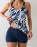 U-Neck Sleeveless Printed Boxer Tankini